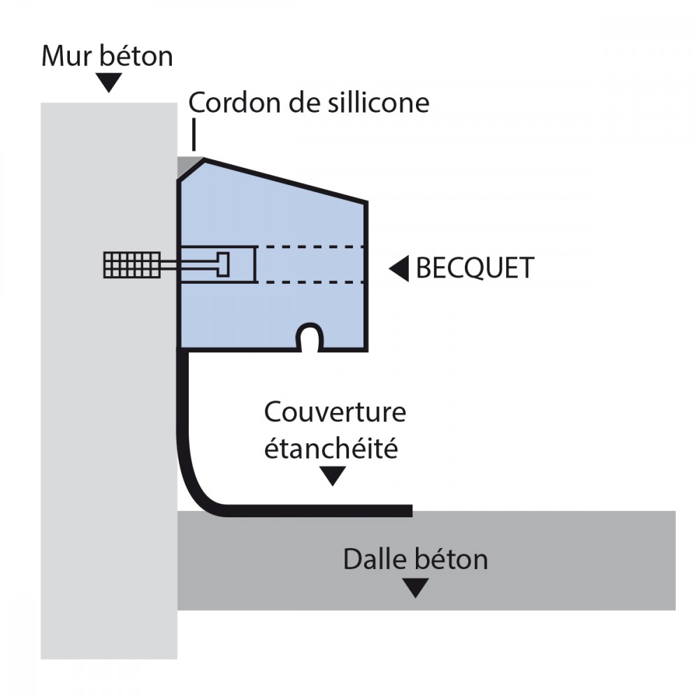 Elément béton permettant de traiter l'étanchéité en toit terrasse.